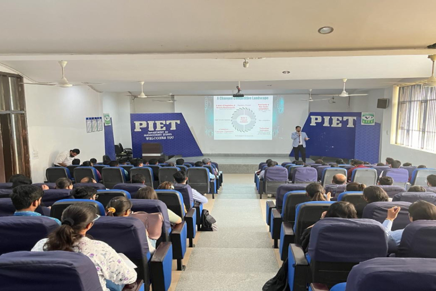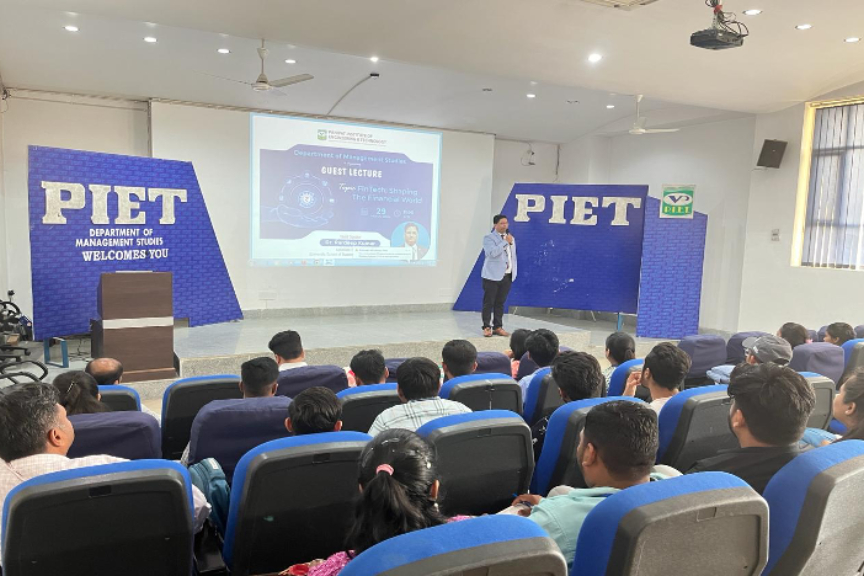On 29th March, 2024, a fintech guest lecture was conducted on the topic of “Fintech: Shaping the Finance World” featured Dr. Pardeep Kumar, an Associate Professor at Chandigarh University, Chandigarh, as the expert speaker. Dr. Kumar delivered insights into various parameters of fintech in today’s world and highlighted how they are emerging as the latest trends in the finance industry. Dr. Kumar provided an overview of fintech, which encompasses the use of technology to innovate and improve financial services. He likely discussed how fintech solutions leverage advancements such as artificial intelligence, blockchain, and data analytics to enhance efficiency, accessibility, and customer experience in financial transactions and services. The expert discussed the latest trends in fintech, including digital payments, robo-advisors, peer-to-peer lending, crowdfunding platforms, and neobanks. These trends reflect the growing consumer demand for seamless, convenient, and personalized financial solutions. The expert emphasized the importance of fintech in driving innovation, fostering financial inclusion, and transforming traditional banking and finance. Fintech has the potential to democratize access to financial services, reduce costs, mitigate risks, and empower individuals and businesses to manage their finances more effectively.