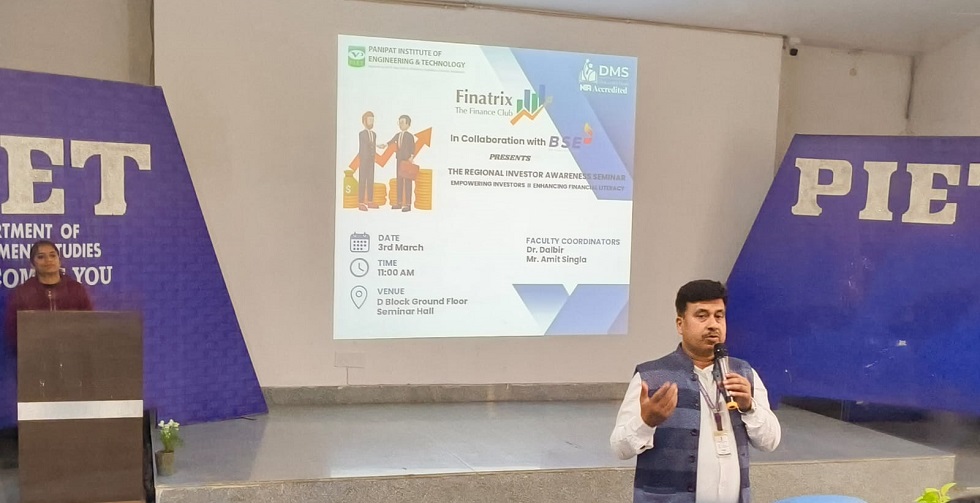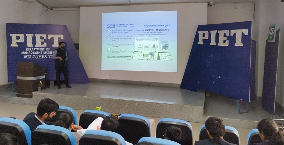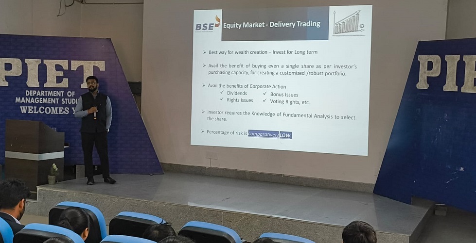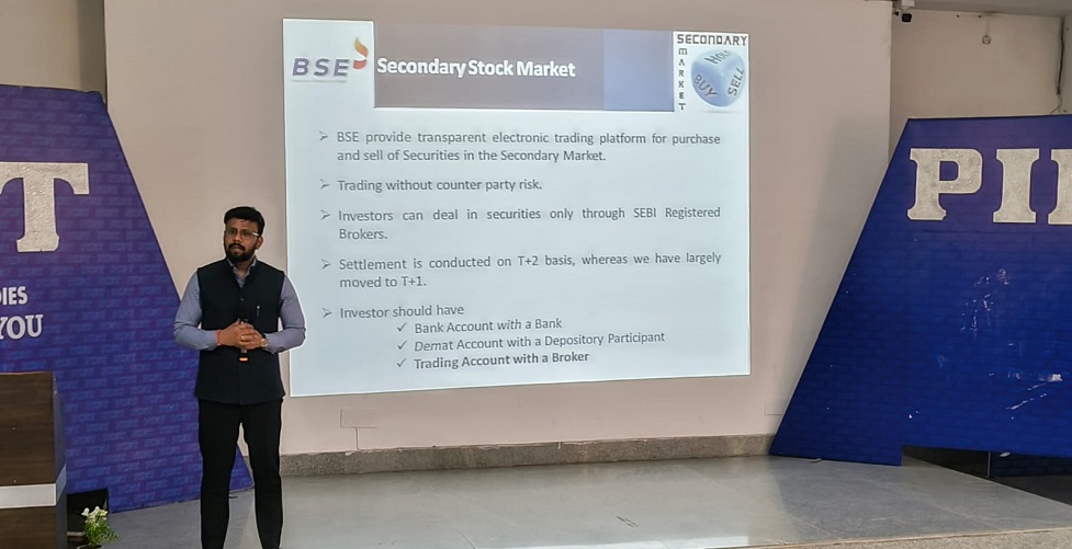On March 3, 2025, the Finance Club, in collaboration with the Bombay Stock Exchange (BSE), organized a Financial Literacy Session for MBA students and faculty members. The session was conducted by Mr. Manuj Bhatnagar, a distinguished resource person from BSE, and was coordinated smoothly by Mr. Aman, President of the Finance Club.