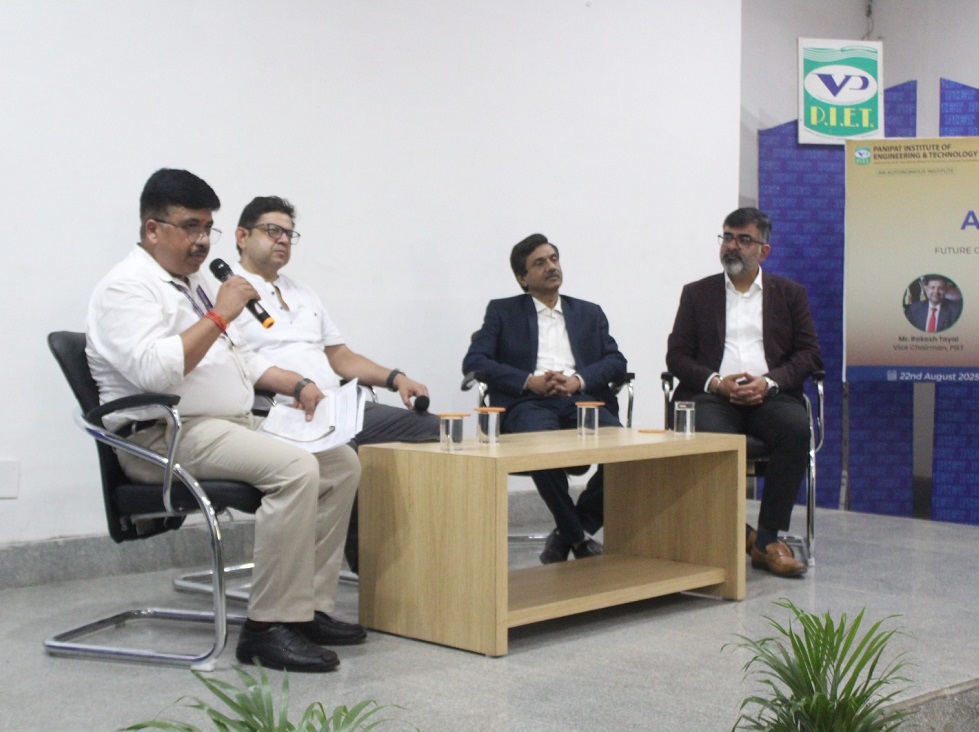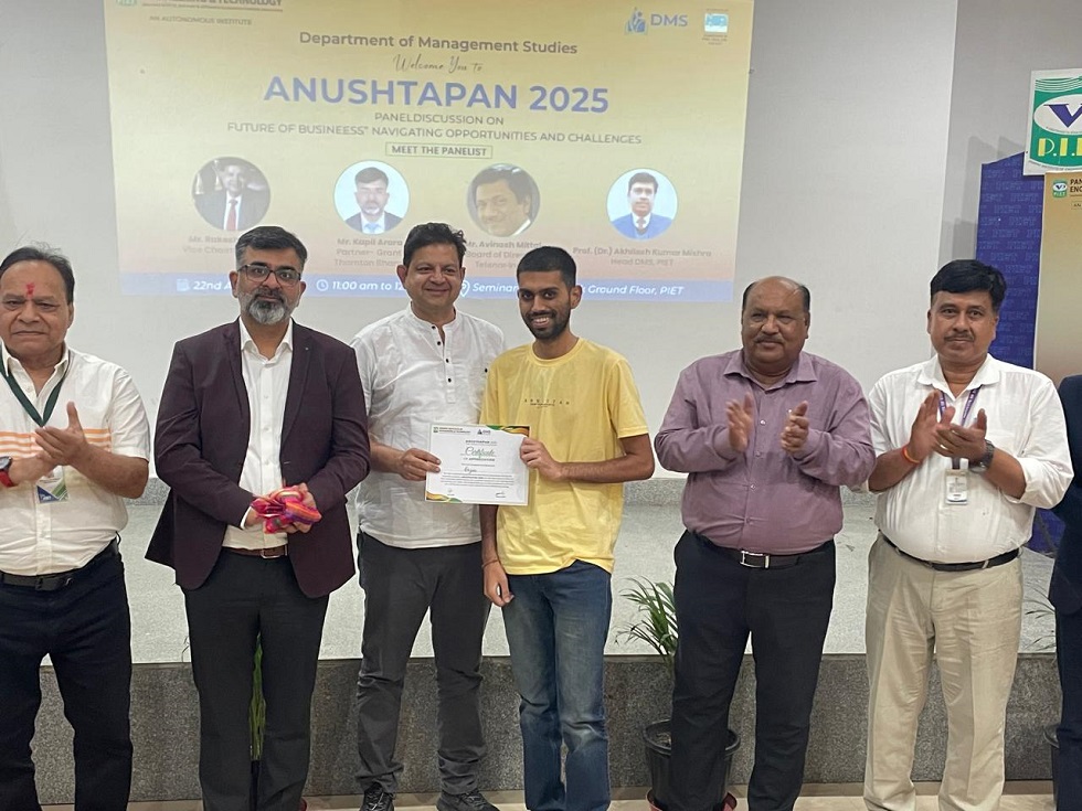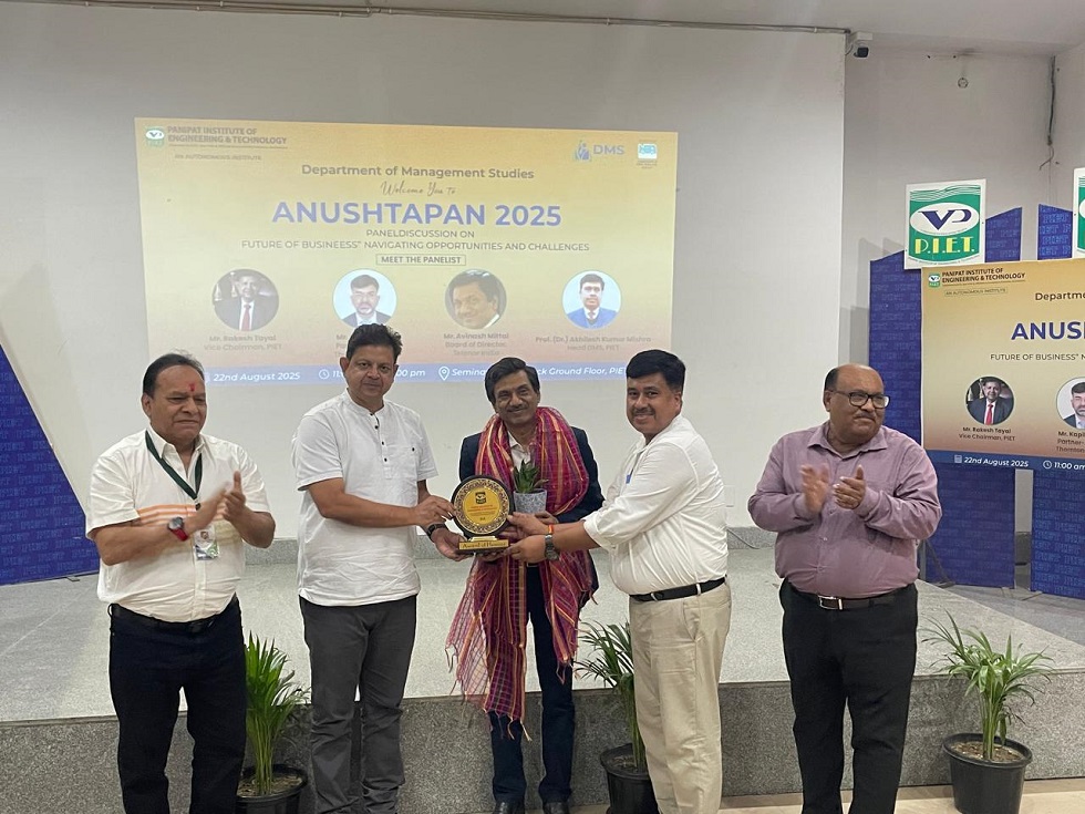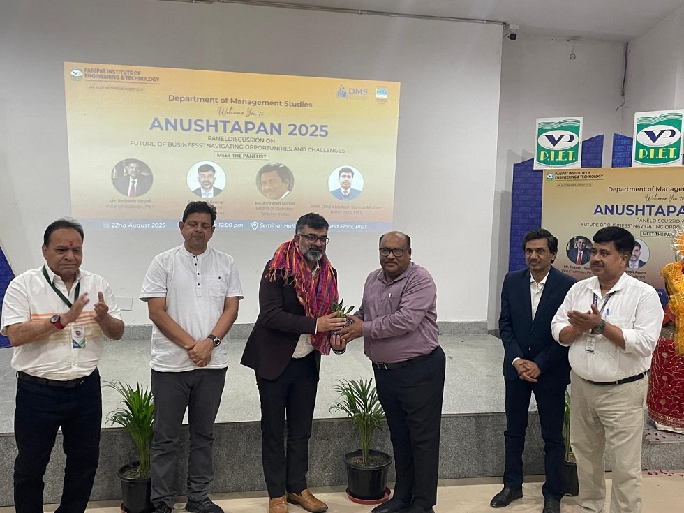 The Department of Management Studies (DMS), Panipat Institute of Engineering and Technology (PIET), successfully conducted the final day of the Induction Program – Anusthapan 2025 on 22nd August 2025. The day was designed to provide valuable exposure to the new students through departmental insights, expert panel discussions, motivational sessions, and interaction with distinguished guests from industry and academia.